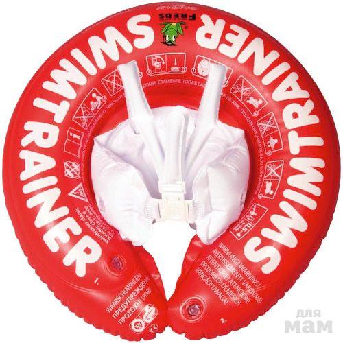 Обучение плаванию малыша с 3 месяцев до 4 лет может начинать с красного круга SWIMTRAINER "Classic". Он предназначен для раннего привыкания к воде, запоминания горизонтального положения тела, закрепления врождённого "лягушачьего рефлекса". Красный круг наиболее плавуч из всех остальных кругов за счёт большего объёма надувных камер (так как начинающим маленьким пловцам требуется большая поддержка).