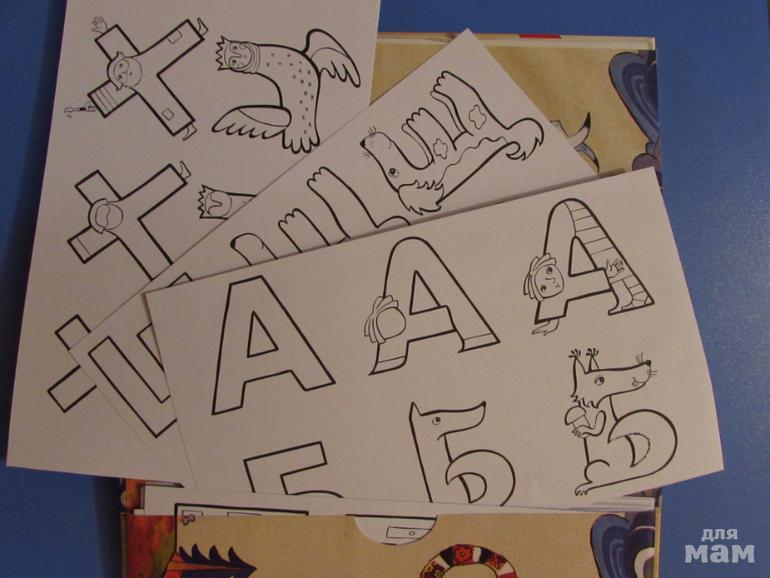 Я эти карточки с буквами ксерю и даю раскрашивать. Буквы хорошо запоминаются когда их раскрашиваешь, выкладываешь из фасоли или лепишь из пластилина
