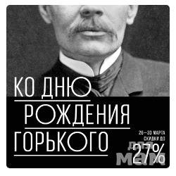 Акция Лабиринт - Ко дню рождения Горького. Скидки до 27% СсылкаОтмечаем 150-летие со дня рождения Максима Горького скидками и подарками!