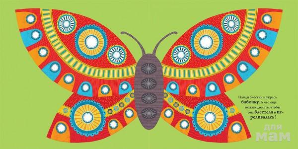 Ему предстоит найти перышки и смастерить из них хвост птичке, сшить лоскутное одеяло из кусочков ткани, отыскать блестки и помочь бабочке засверкать. А еще его коллекция пополнится пуговицами, фантиками, ленточками, палочками и другими сокровищами, которые можно хранить прямо на страницах книги. Когда ваш малыш закончит заполнять ее диковинными вещами, она точно станет особенной и единственной в своем роде.