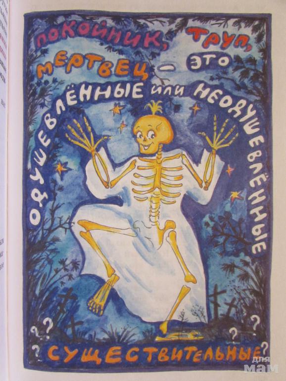 Итак, это книжка про старенького волшебника, его зовут Имя Существительное. Он может превращаться в разные ПРЕДМЕТЫ: в коня, в качели, в мяч, в дом, в ворону, в динозавра и т.д.