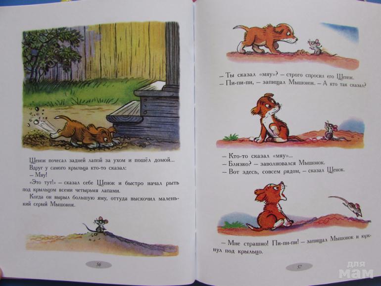 Тут и история котят, которые догоняя мышонка несколько раз меняли свой цвет! И знаменитая сказка про яблоко, где ворона, заяц и ежик делили яблоко.