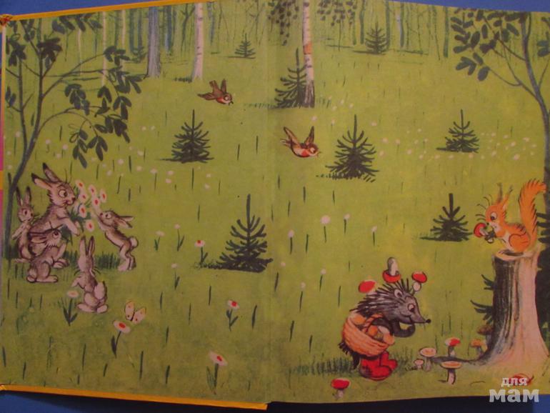 Картинки в книге выше всяких похвал! Яркие, красочные, знакомые с детства! Добрый зайчик, умный ежик, смелый котёнок. У каждого персонажа свой собственный характер.