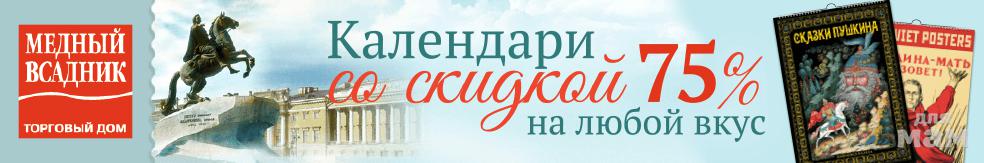 воспользуйтесь выгодным предложением на календари на 2018 год разнообразной тематики, разных форм и размеров от «Медного всадника», на которые действует скидка 75%!