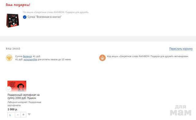 Как выяснилось, предчувствие и опыт покупок мне подсказали правильно — каждое слово на получение сумки "Вселенная в книгах" — ОДНОРАЗОВОЕ. Поэтому ни в коем случае не активируйте сразу все "сумочные" слова в одном заказе.