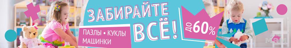 Май-шопСкидки до 60% на игрушки и игровые наборыc 19.04.2018 18:00 до 10.05.2018 23:00сумасшедшие скидки на настольные игры, пазлы, игрушки и игровые наборы! От коллекционных моделей автомобилей до оригинальных пазл-часов!