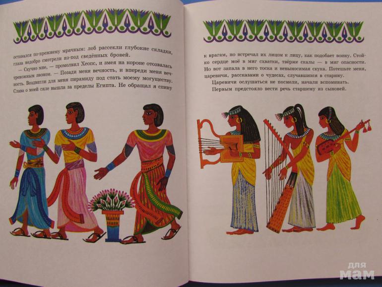 Оформлена книга замечательно: яркие рисунки с фигурами в египетском стиле. Эти запоминающиеся рисунки создал художник Овчинников.