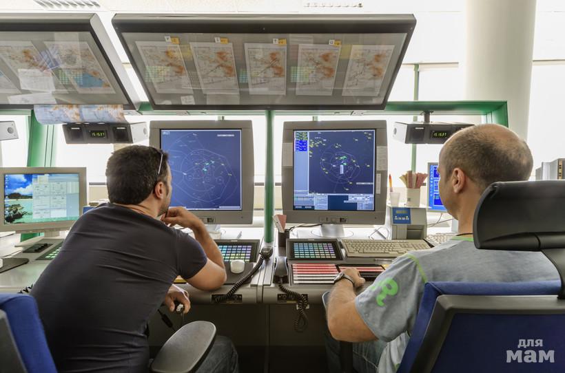 На каждого диспетчера приходится 5 мониторов с различной, постоянно меняющейся информацией. Они мониторят не только процесс полета, но и движение самолета по земле, освещение полос, климатические условия, данные о конкретном лайнере и многое другое.