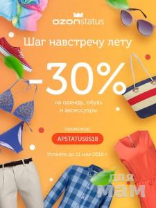 ОЗОНТолько для вас: межсезонная распродажа на 4 дня раньше!Активируйте кодовое слово "APSTATUS0518" на скидку 30%Получите скидку 30% на товары в этом разделеАкция действует с 8 мая по 11 мая 2018 года