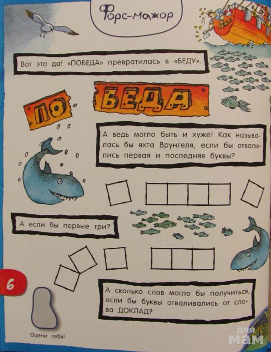 Дополнительно в книжке есть наклейки (два листа), кроссворды, карта с маршрутом путешествия экипажа "Беды" и бумажная модель яхты.