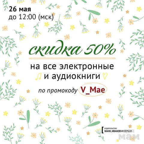 V_Mae — 50% на все электронные и аудиокниги ровно до полудня субботы, 26 мая.