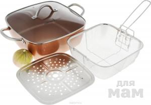 с крышкой, с керамическим покрытием, с корзиной, с поддоном, с рецептами, 28 х 28 см