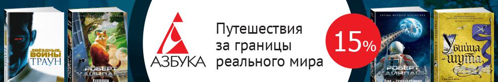 дарим скидку 15% на «старую добрую фантастику», а также современные фэнтезийные и фантастические бестселлеры российских и зарубежных авторов для детей и взрослых издательства «Азбука».