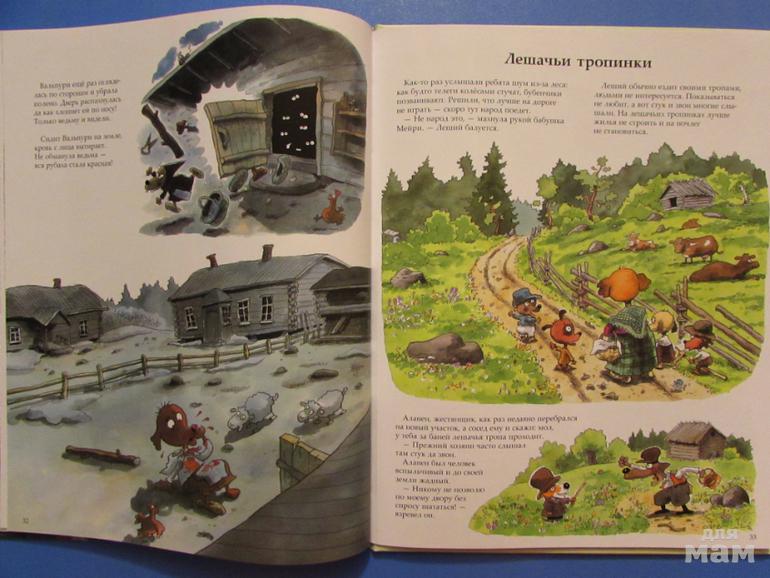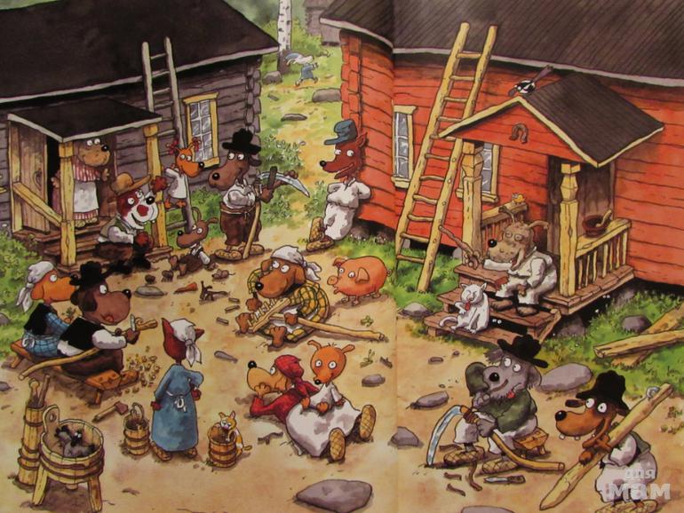 В книге Маури Куннас подробнейшим образом проиллюстрировал деревенский быт, крестьянские дворы, дома, работы в разные времена года.
