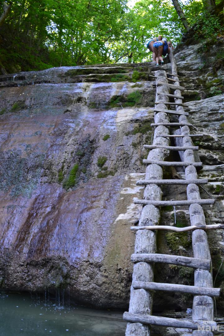 Так мы пройдя еще несколько высоких водопадов, оказались перед 10 метровым (так говорили нам местные) из далека лестница казалась не очень высокой, но когда мы подошли, то ой ей ей. Я лезла и старалась не смотреть вниз.