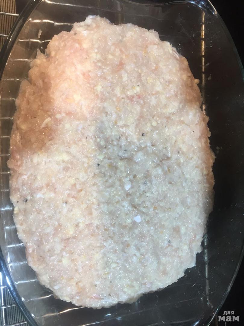 Берём любую часть курицы, филе, но, обязательно с кожей, если без кожи, то только филе бедра или голени, 1 кг, 1 большая луковица, 1/4 батона белого хлеба, 1 ст ложка соли, молотый перец. Хлеб размачиваем в воде/молоке, но не до состояния манной каши, просто чтоб был не жёсткий, всё вместе пропускаем через мясорубку, добавляем соль и перец, вымешиваем фарш, он должен получиться очень пластичный, податливый и не жёсткий, берем любое блюдо для запекания, ничем не смазываем, выкладываем фарш на блюдо