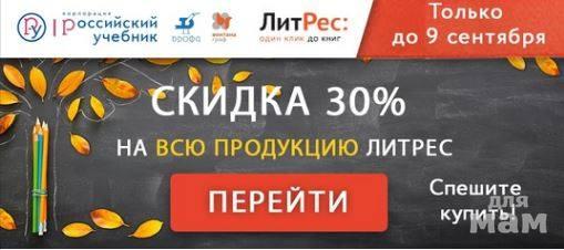 Акция ЛитРес - можно купить учебную литературу издательств «Дрофа» и «Вентана-Граф» со скидкой 30%. Учебники в электронном формате. Акция проводится по 09 сентября 2018 года. Выбрать