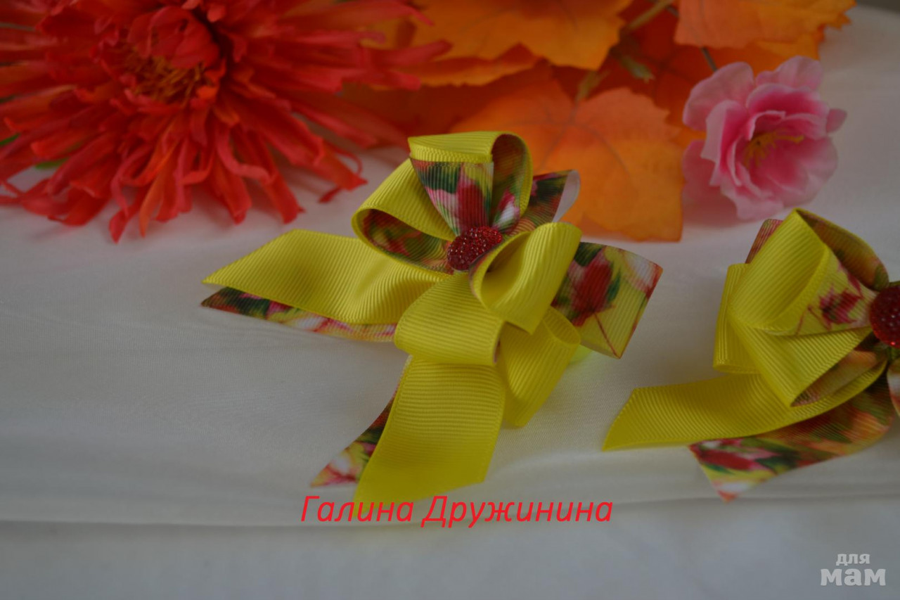 4) бантики из репса. Ну это чистая осень, при желании можно заказать. Лента есть. Небольшого размера 8 см. 250 руб/пара. На ленте оч. красивые осенние листочки. что-то темновато смотрятся, чуть позже посмотрю фото покачественнее