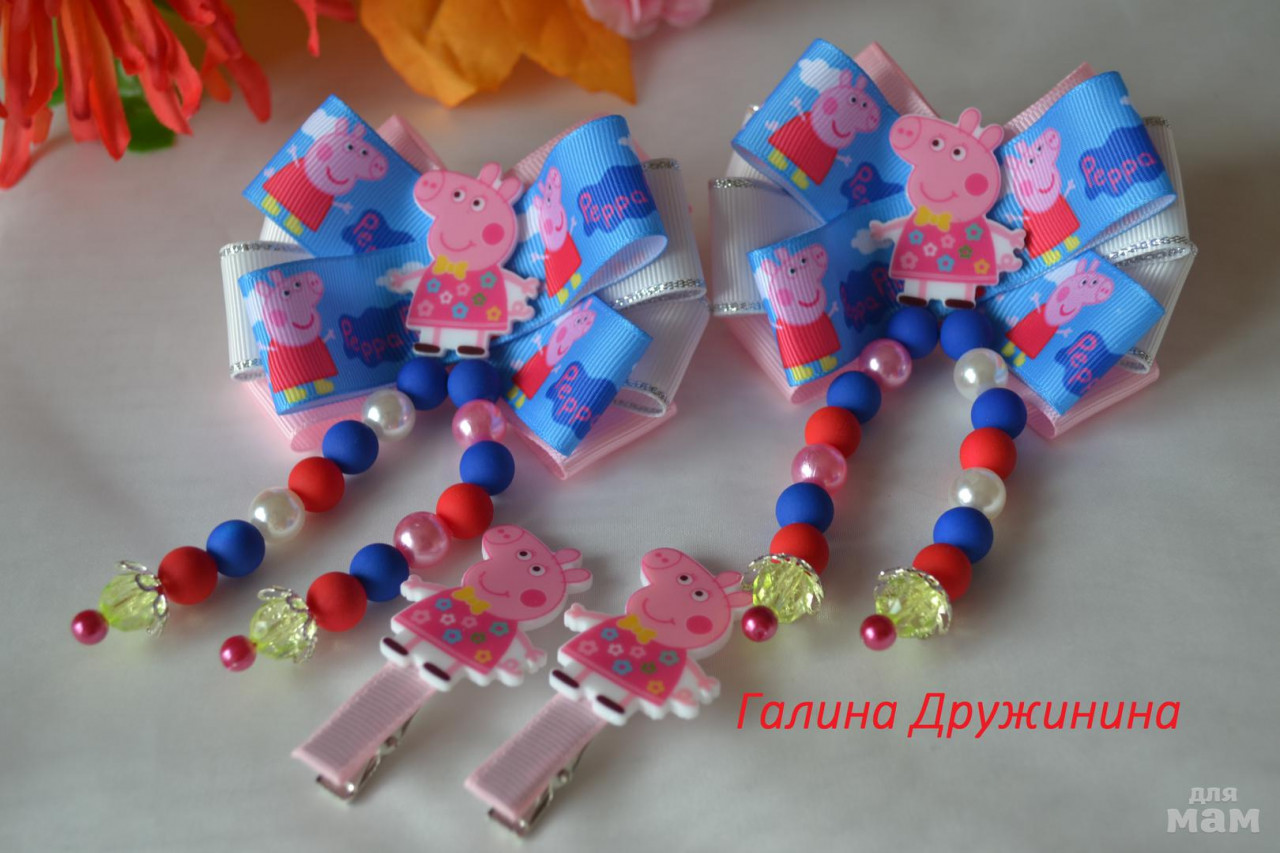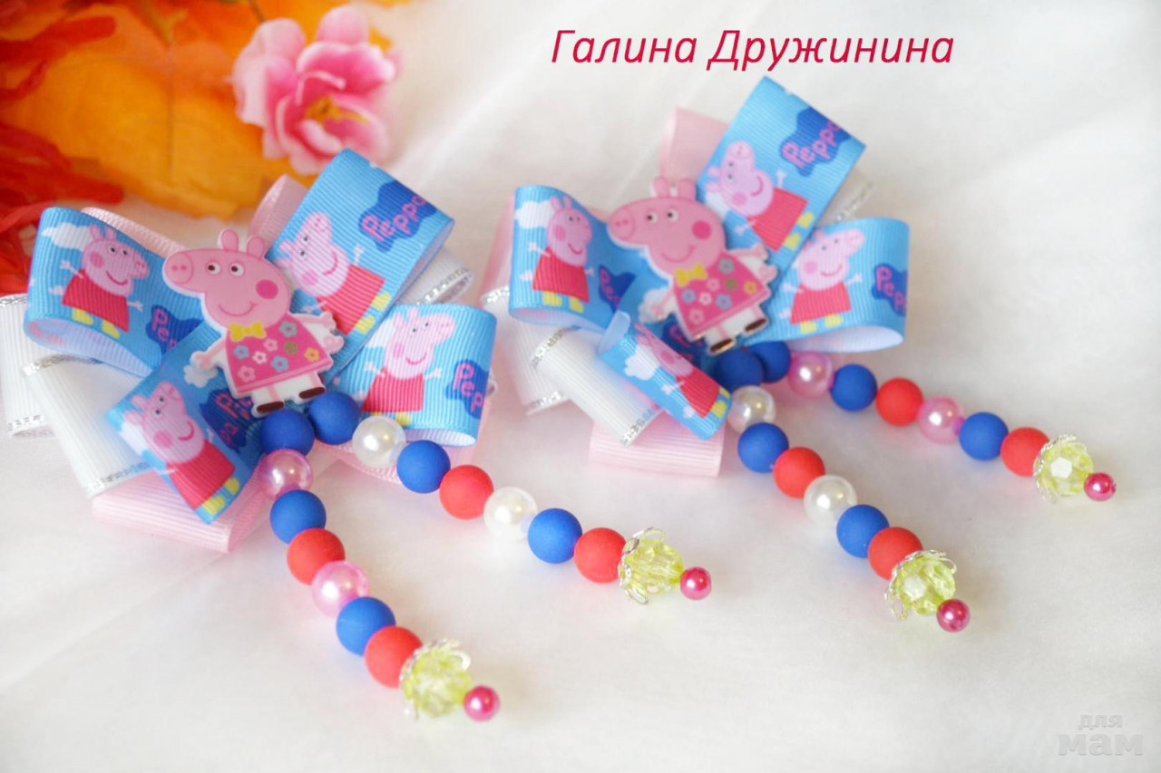 11) комплект бантиков с пеппой. Доступны к заказу. Бантики с веселыми бусинками и зажимчики