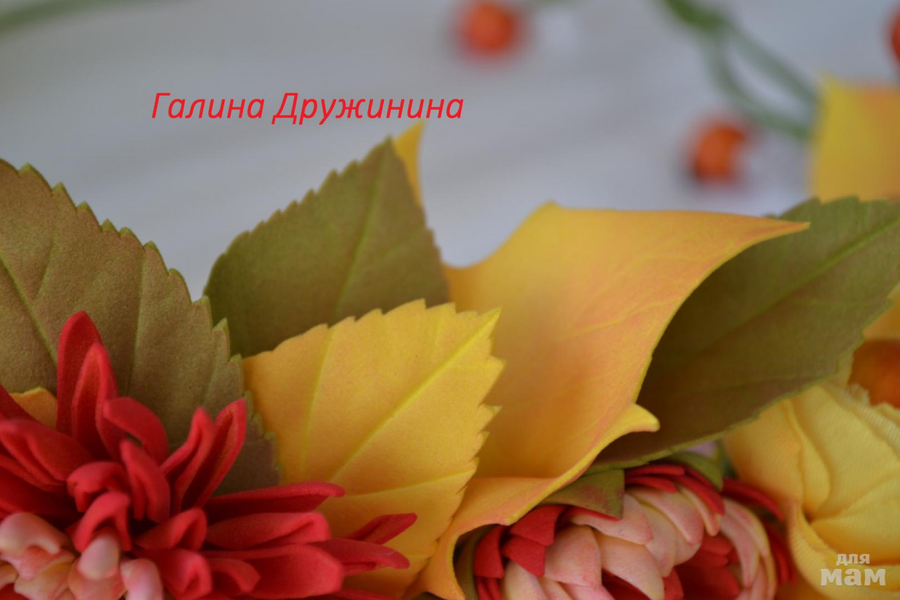 Цветы и листья сделаны из иранского фоамирана. Листочки и цветочки протонированы.