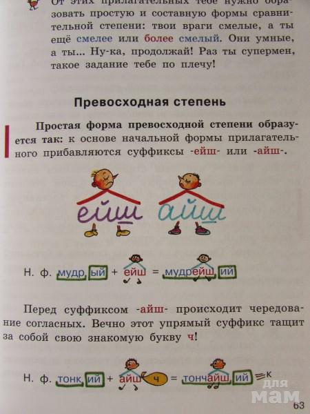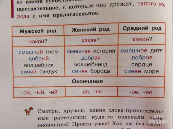 Очень понравилось то, что в тексте книги сразу выделены имена прилагательные. В книге все прилагательные выделены синим цветом.