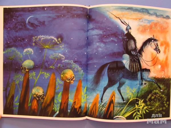 В ней ведьмина избушка огорожена частоколом из черепов со светящимися глазницами, а по дремучему лесу скачут ведьмины слуги: белый, красный и черный всадники.