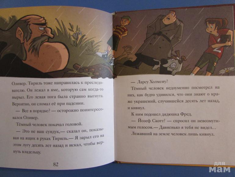 И тут за дело берутся юные сыщики Тириль и Оливер. Они решают выяснить, кто это сделал и зачем. Юным детективам придётся направиться в заброшенный и страшный дом, найти старинную таинственную карту, а также встретиться с Тёмным человеком.