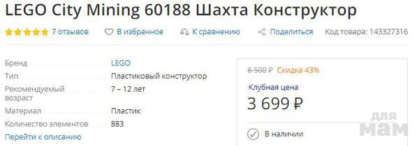 LEGO City Mining 60188 Шахта КонструкторКупить в Озоне со скидкой