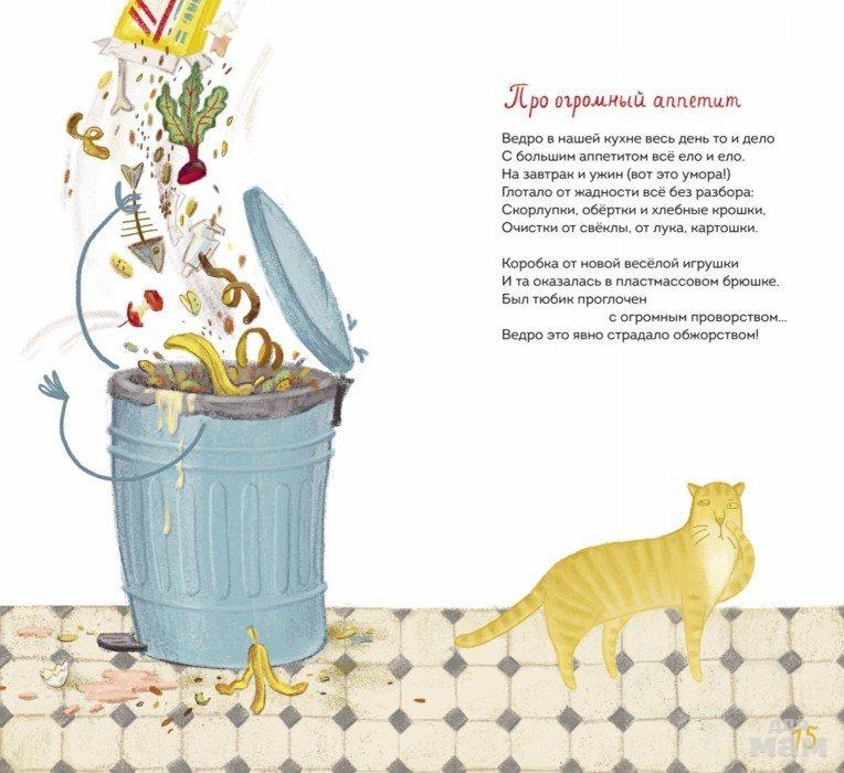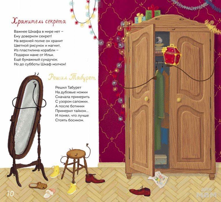 Шторы представляют, что они паруса, мусорное ведро страдает от обжорства, шкаф и подушка хранят в себе секреты, а комбинезон ведёт разговоры с вязаным платком.