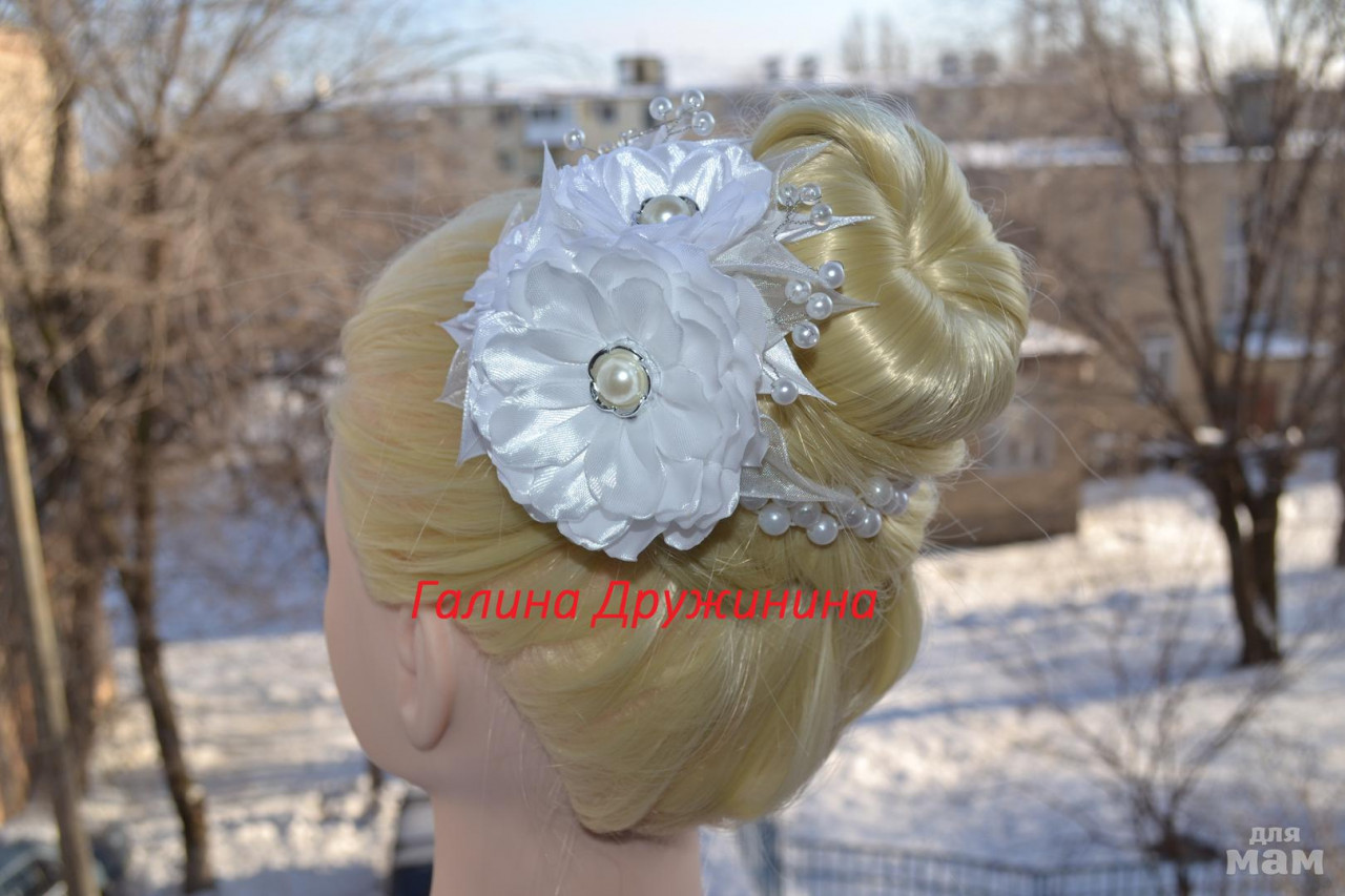 2) украшение на пучок. Цветочки в серо-голубой гамме.