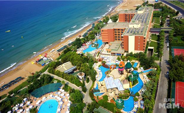 С хорошим пологим, песчаным пляжем, аквапарком и системой все включено! Детский клуб и анимация на русском языке!