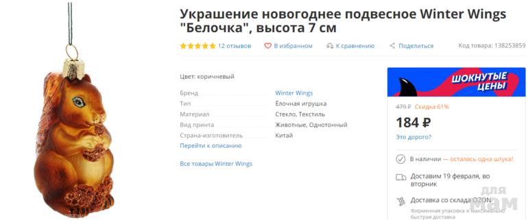 Украшение новогоднее подвесное Winter Wings "Белочка"