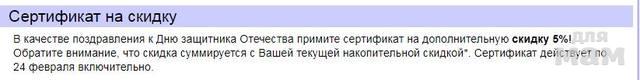 Друзья, проверяйте свою электронную почту! Майшоп разослал сертификаты на скидку 5%!Скидка суммируется с Вашей текущей накопительной скидкой*.Сертификат действует по 24 февраля включительно.Ввести кодовое слово (В Корзине)