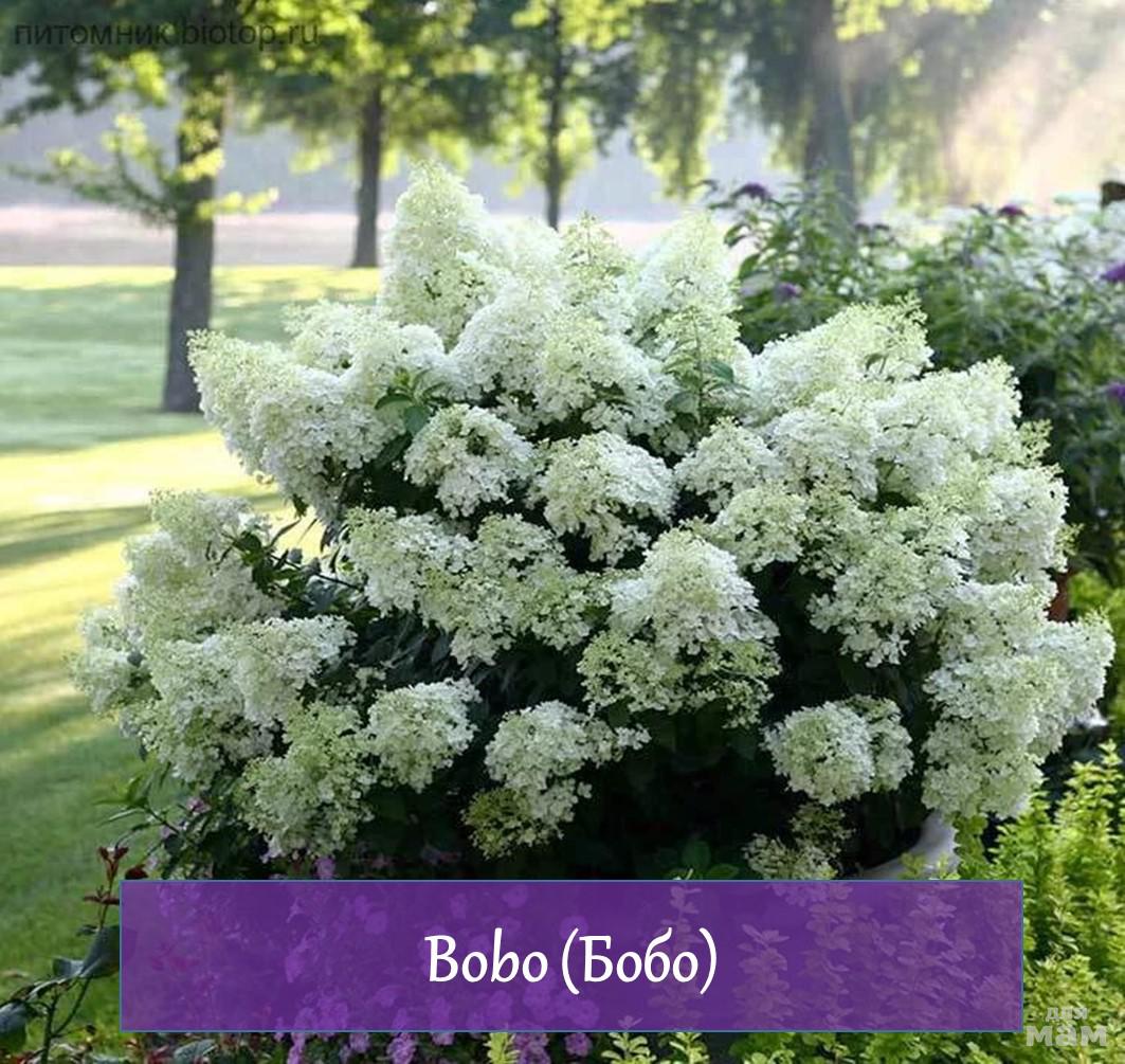 "Бобо" раннецветущий карликовый куст до 0,8 м. Соцветия белые, лимонные и розовые в разные периоды цветения. Мне очень нравится эта гортензия..