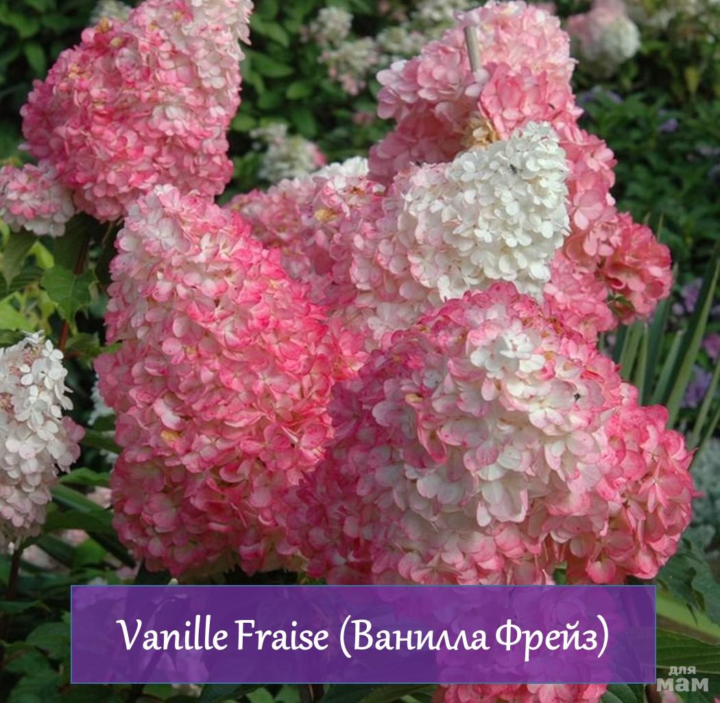 «Ванилла Фрейз» — Один из самых популярных сортов... очень красивая. У меня посажена в 2018г, пока не цвела. Раскидистый куст высотой до 2 м. Цветение начинается позже, чем у многих других видов гортензии, но длится до наступления заморозков. Сорт с чистыми белыми бутонами, которые к концу лета обретают розовый окрас. В разгар сезона цветущие метелки напоминают большой стакан фруктового мороженного со сливками. Зимует без укрытия, хорошо переносит морозы. Единственный недостаток – слабые ветви, под собственной тяжестью поникающие к земле.