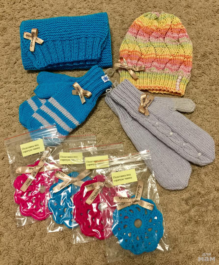 Дочка тоже приняла участие и связала подставки под горячие чашки.