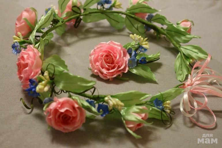 все листики и цветочки подвижны, можно сделать веночек как объемным так и узким)