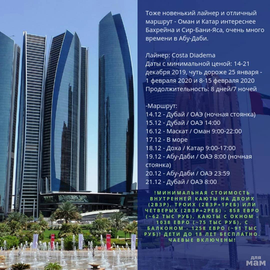 Круиз по Персидскому заливу - это была моя давняя мечта. Манили страны, будто сошедшие со страниц сказки про Синбада Морехода: Эмираты, Бахрейн, Катар, Оман. Подводя итог, скажу: загадочный Восток покорил нас!