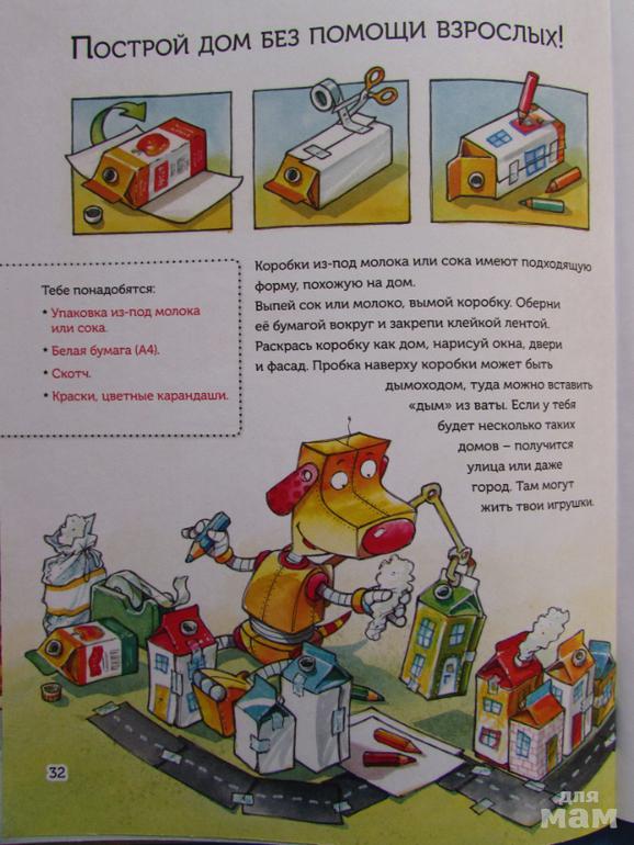 Дополнительно книге размещена инструкция о том, как построить игрушечный домик из коробки из-под молока или сока.