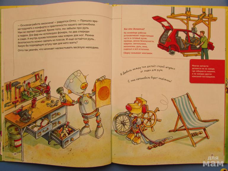 Помимо истории про Отто и Дюбеля в книге размещена информация, о том как в реальности происходит конструирование и сборка автомобилей на заводах.