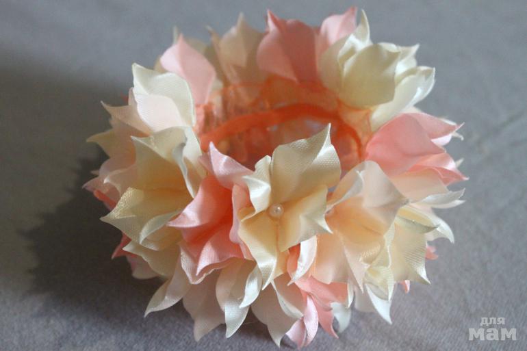 Но на этот раз здесь использовала 4 оттенка лент и резиночки побольше размером.