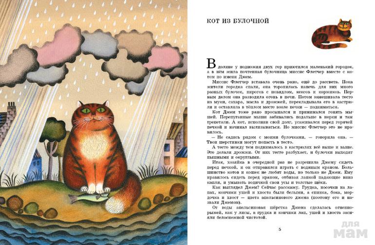 Кот взошел на дрожжах, которыми его, вместе с тёплым молоком, лечили от простуды. Яблочный пирог, который отдаленно напоминает хорошо нам известный теремок, отправился в полёт. Король кузнечиков шлепнулся в овсянку прекрасной, но нищей девушки Бриджет и щедро наградил её за спасение из каши. Северный Ветер в знак благодарности за вызволение из ветвей колючего дерева подарил малютке Лауре волшебное ожерелье из дождевых капель. Малышка Дейзи, вынужденная играть на грязных стройплощадках, где работает её отец, вдруг оказывается на Луне, гуляет среди лунных маргариток и катается на лунных лошадках.