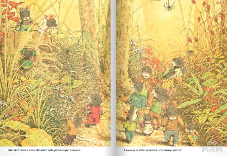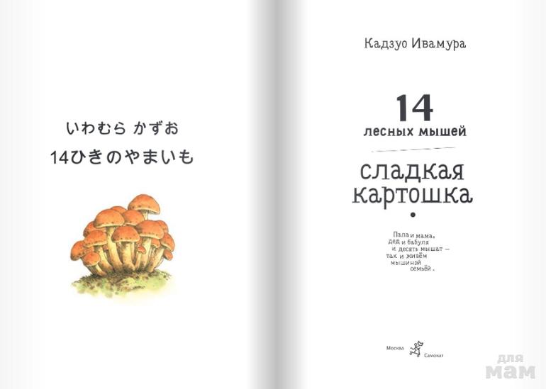 Осень в лесу — пора собирать урожай. Орехи и семена уже собраны. Отправляемся копать батат — сладкую картошку вместе с очаровательным семейством мышат из книг японского художника Кадзуо Ивамура. Непростое это дело, когда корень батата большой и прячется глубоко под землей! Но все возможно, когда вся семья — и маленькие, и большие — трудятся вместе. И какой красивый лет вокруг, и какой вкусный ужин из сладкой картошки получился, объеденье! «14 лесных мышей» — очень популярная в Японии и многих европейских странах серия книг о красоте повседневности и о жизни трех поколений мышиного семейства: бабушки, дедушки, мамы, папы и еще десяток мышат. Сразу после выхода в 2017 году книги серии стали бестселлерами издательства «Самокат». Книги Ивамура напоминают миниатюрные кукольные домики, в них хочется рассмотреть и потрогать каждую деталь, а каждое маленькое событие наполнено истинно японской философией и любованием жизнью в каждом ее моменте.