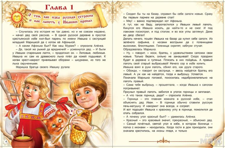 Это почти детективная история о том, как два родных брата потеряли друг друга и как верные друзья не бросили их в беде и помогли из опасной переделки выбраться. И о том, как рыжий разбойник, который виноват во всём оказался, не только наказания избежал, но ещё и награду получил: Пока дружная компания героев переживает весёлые приключения, вдумчивый читатель разберётся в устройстве русской избы, познакомится с крестьянским бытом, научится отличать аршин от сажени и выяснит, наконец, куда бредёт Ивашкин лапоть. Книга адресована детям от 5 лет.