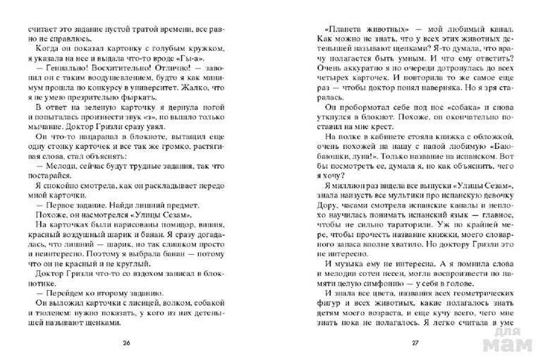 Книжка про Мелоди удивительным образом вызывает не жалость к главной героине, а уважение. Написанная от первого лица она вызывает не обычное смущение, которое мы привыкли испытывать при встрече с инвалидами (смущение и неловкость от того, что с нами-то все в порядке, а им мы, дескать, ничем помочь не можем), а восхищение ее внутренней силой, глубиной ее ума и неловкость от того, решением каких мелких в сущности проблем мы заняты большую часть времени, как мало замечаем и плохо понимаем других людей.