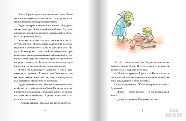 У комиссаров Гордона и Жаби из четвёртого детектива прославленного шведского писателя Ульфа Нильсона появляются юные помощники. Гордон готовит смену: он открывает лесную полицейскую школу и воодушевлённо учит молодёжь, как отдавать честь, сидеть в засаде, идти по следу и мастерить фуражки...И вдруг понимает — он никогда не интересовался происхождением своей коллеги Жаби: откуда она родом, кто её семья... Удивительно, но сама Жаби ничего о своём прошлом не помнит! Полицейские и их помощники вместе отправляются на поиски. О предыдущих расследованиях лесных полицейских читайте в книгах «Комиссар Гордон. Первое дело», «Комиссар Гордон. Последнее дело?» и «Комиссар Гордон. Ещё одно дельце». В Швеции по этой серии снят полнометражный мультфильм и мультипликационный сериал.