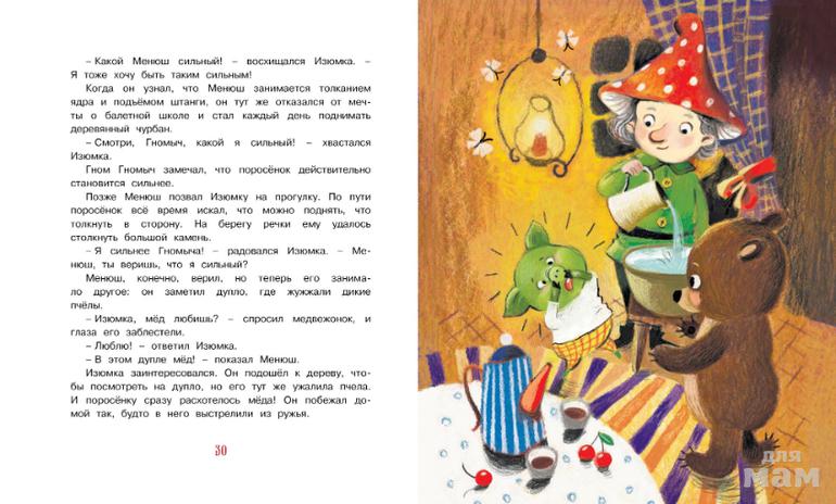 В книгу «Изюмка, гном и воздушный змей» вошли сказки, которые раньше не переводились на русский язык. Это добрые и весёлые истории о поросёнке Изюмке, который, совсем как ребёнок, открывает для себя мир и каждый день узнаёт что-то новое, и о его старшем товарище Гномыче, который воспитывает Изюмку и дарит ему свою заботу и любовь.