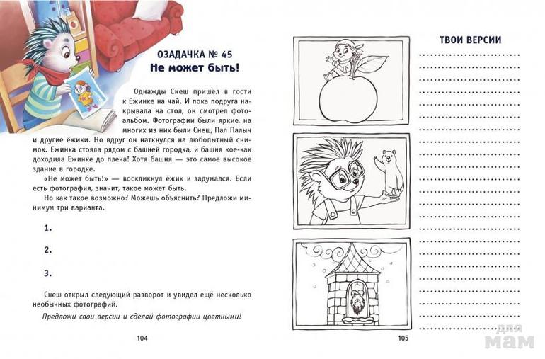 Сборник озадачек - это велосипед для мышления, библиотека необычных заданий и забавных историй. На каждой странице ребёнка ждут сказочные герои, которым нужны его идеи, чтобы выпутаться из непростых ситуаций. И что удивительно - нет единственно верных ответов!