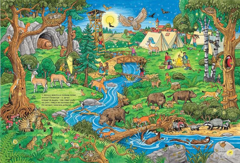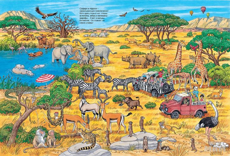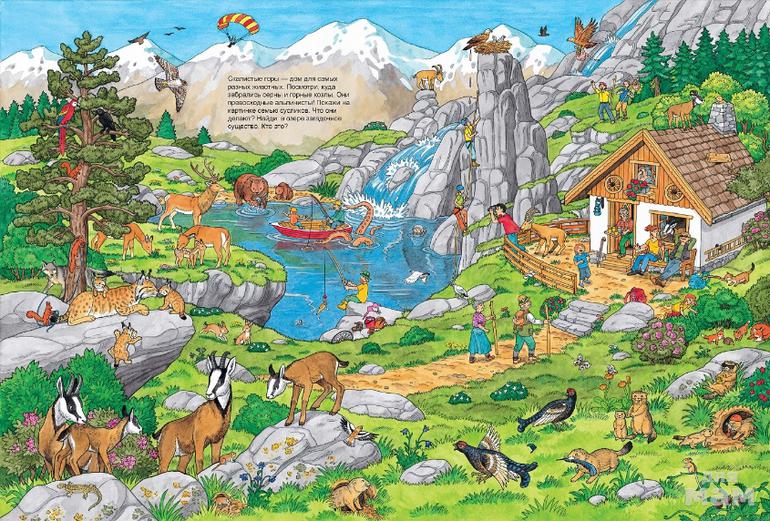 Виммельбух рассказывает о жизни самых разнообразных обитателей нашей планеты. Львы и олени, орлы и киты, жизнь животных в дикой природе и в зоопарке. Маленькие читатели будут много раз возвращаться к этой книге. Следя за приключениями ее героев, они выучат названия животных и узнают многое об их жизни.