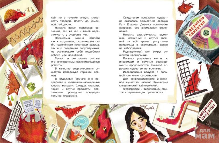 "История про инопланетян" (или "Камнегрыз со станции Клязьма") - это повесть о людях, которые не испытывают страха перед существами, не похожими на них. Пусть они выглядят пугающе, ничего не говорят и едят странные продукты - им тоже нужна любовь и защита. Этому маленькому инопланетянину повезло - он попал в семью Кати, которая моментально нашла общий язык с пришельцем. Но не все хотели с ним дружить, ведь гораздо выгоднее найти способ его использовать. Новые остроумные и добрые иллюстрации сделала Екатерина Муратова.